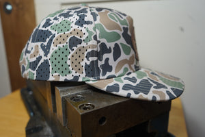 The Elk Putters Hat 003 – Woodland Antler Camo features a classic camo pattern paired with a premium leather ELK Putters antler logo patch. Inspired by the natural environment behind the Elk Putters identity, this design represents strength, precision, and craftsmanship.