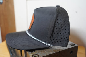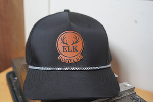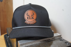 The Elk Putters Hat 002 – Midnight Antler Rope features a clean, all-black design paired with a premium leather ELK Putters antler logo patch. The added rope detail gives it a modern tour-inspired look, combining classic style with Elk Putters identity.